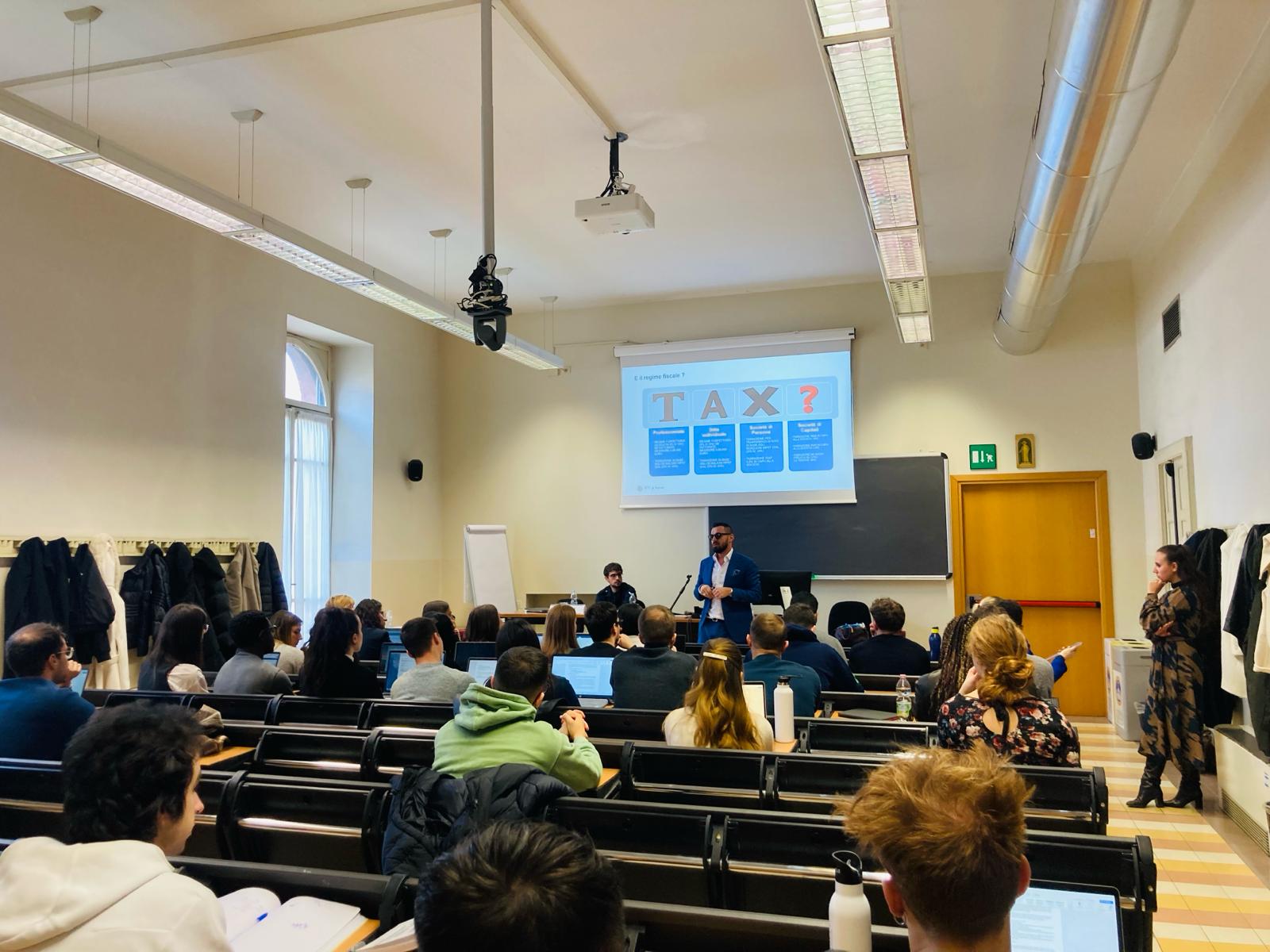 Marco Garavaglia, Innovation & Business Development di MICROingranaggi S.r.l., Paolo Strada, Commercialista e Titolare di Studio Strada – che sono anche laureati dell’Università Cattolica – e Alessandra Pilia, Responsabile Marketing e Comunicazione A.P.I., hanno incontrato gli studenti per parlare dei percorsi post università.