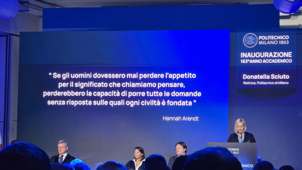 Al centro del discorso inaugurale tenuto dalla Rettrice, Donatella Sciuto, il ruolo dell’università come corpo intermedio, capace di ricucire un’immagine di insieme che dia senso al cambiamento attraverso l’esercizio del pensiero critico e una riflessione attenta sul ruolo della tecnologia.